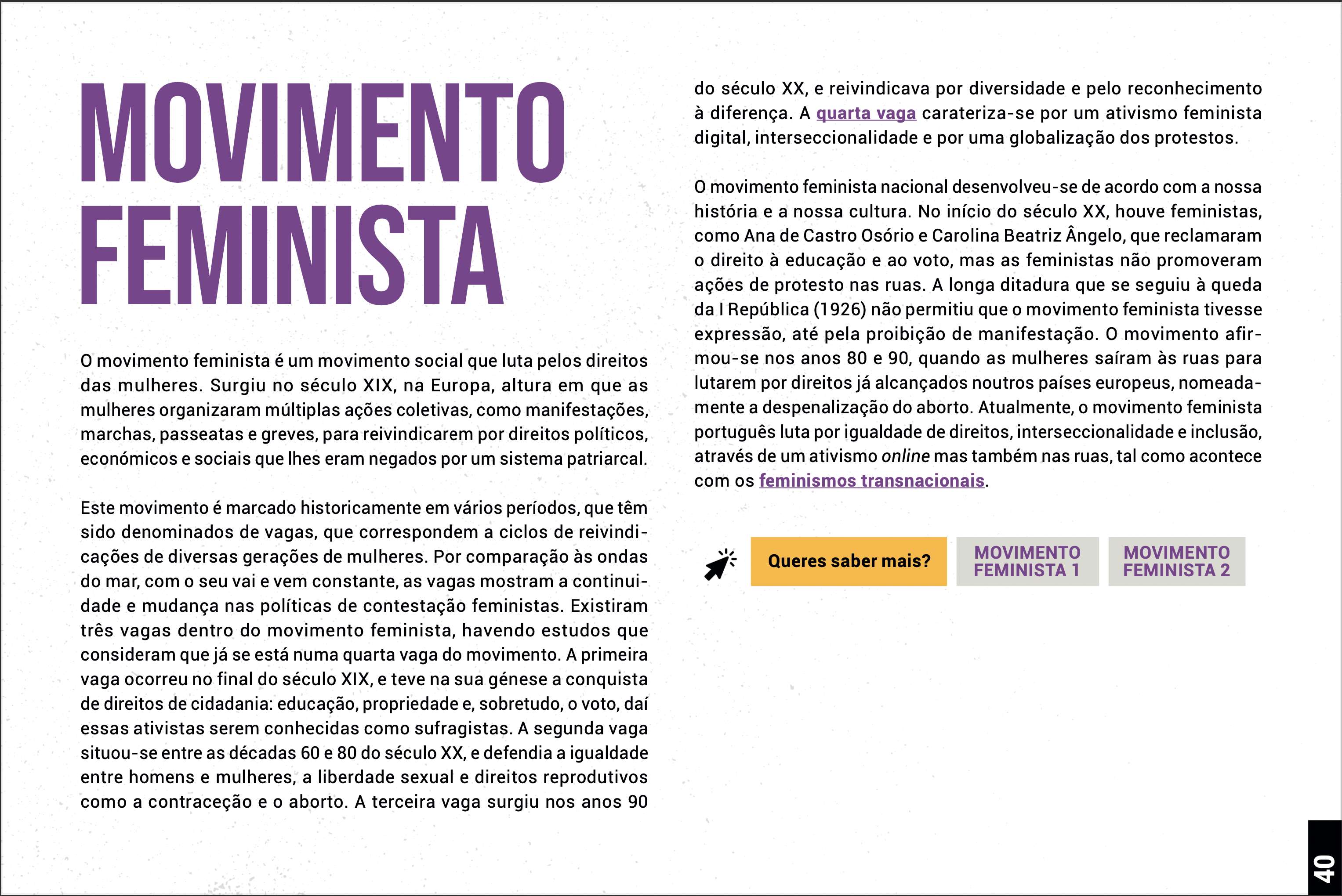 By revisiting events and figures related to feminist activisms in Portugal, the booklet tries to reintroduce into History the memory of Portuguese activists and their struggles. This serves as a contribution to education for gender equality/feminisms and, consequently, human rights.